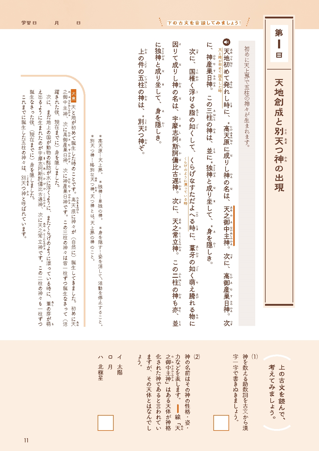一冊を通して「古事記」の上巻、日本の神話を学びます。