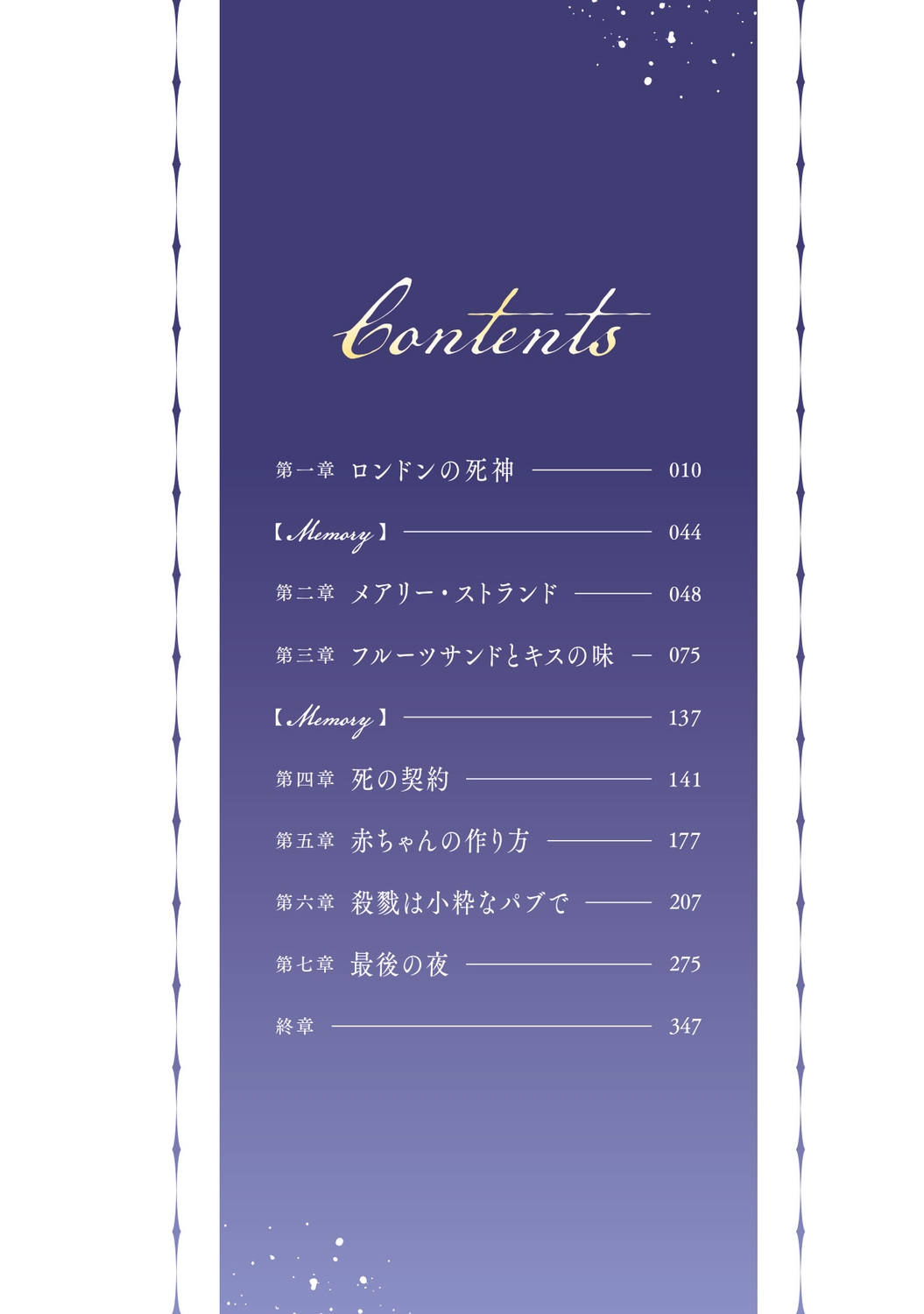 ロンドンに朝が来なくなって、八年と三ヶ月。ジェームズは本業の学生を務めながら、文字通り夜な夜な副業をこなす。それは、"死神"として人々の寿命を狩り、世界の"寿命平衡"を保つこと。だが彼は、その性格と過去のトラウマから、人を殺すことができないでいた。