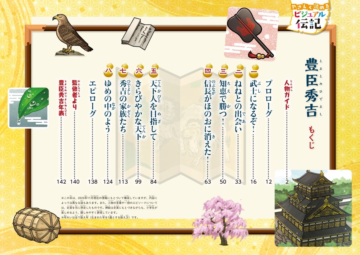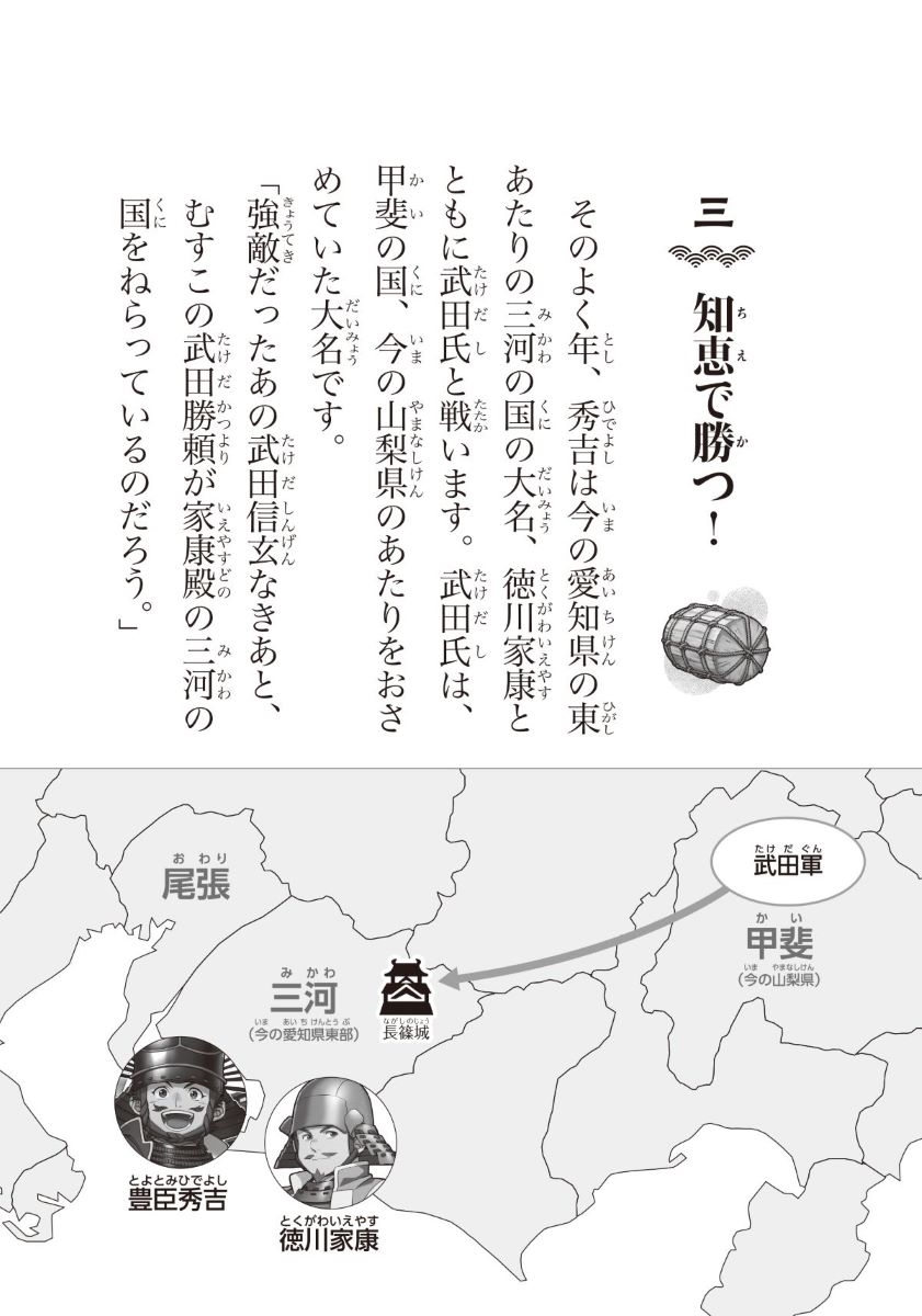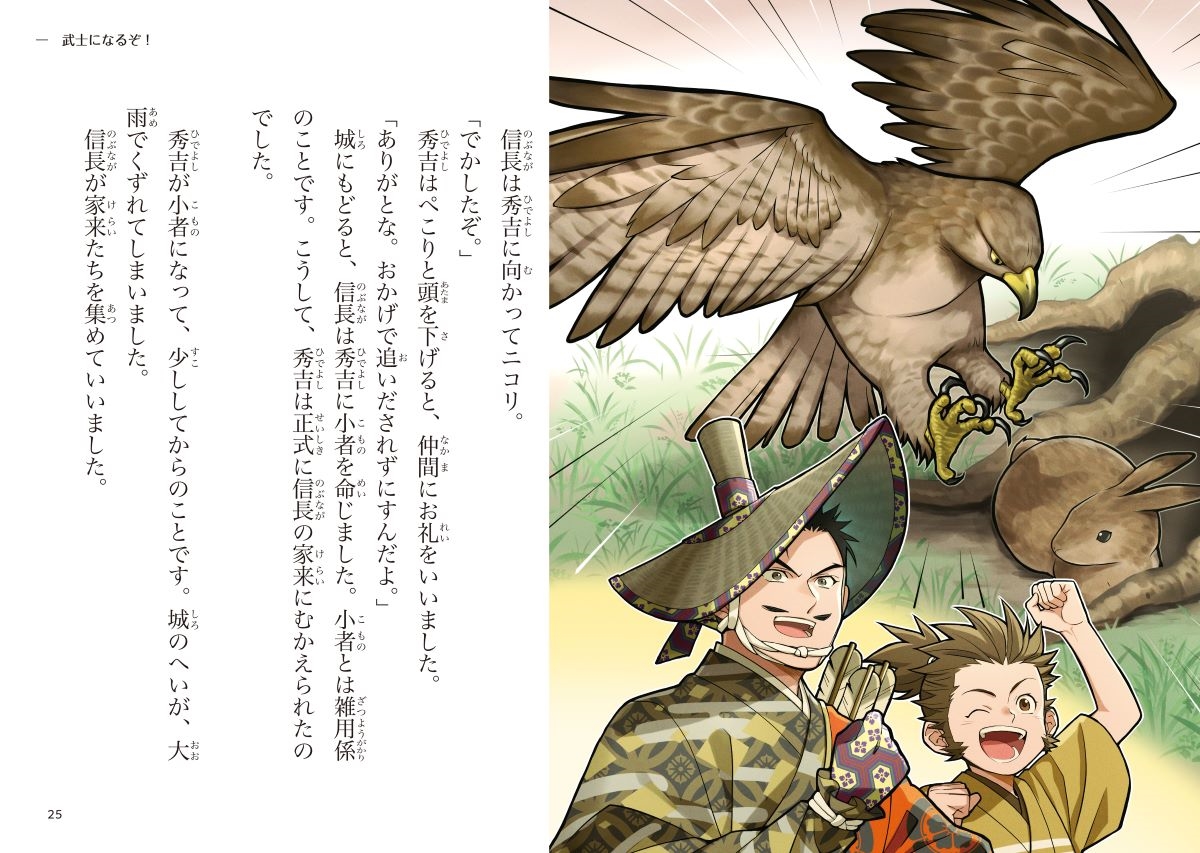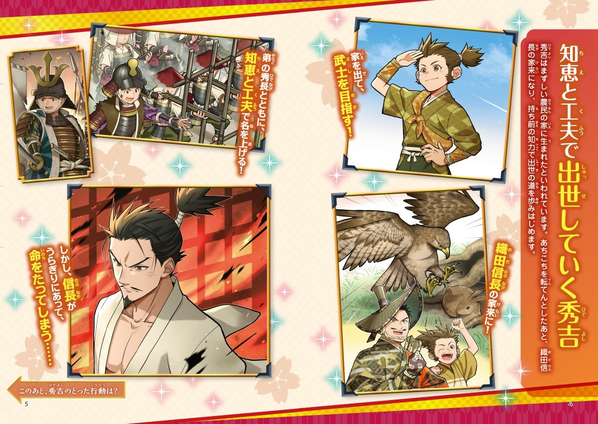 巻頭に図解ぺージつき。豊臣秀吉や、本文に登場する人物の紹介、秀吉の活躍した戦国時代の地理や、天下を統一していくまでの流れが一目でわかります。本文を読む前にイメージがわくので、読書への導入がスムーズにできます。