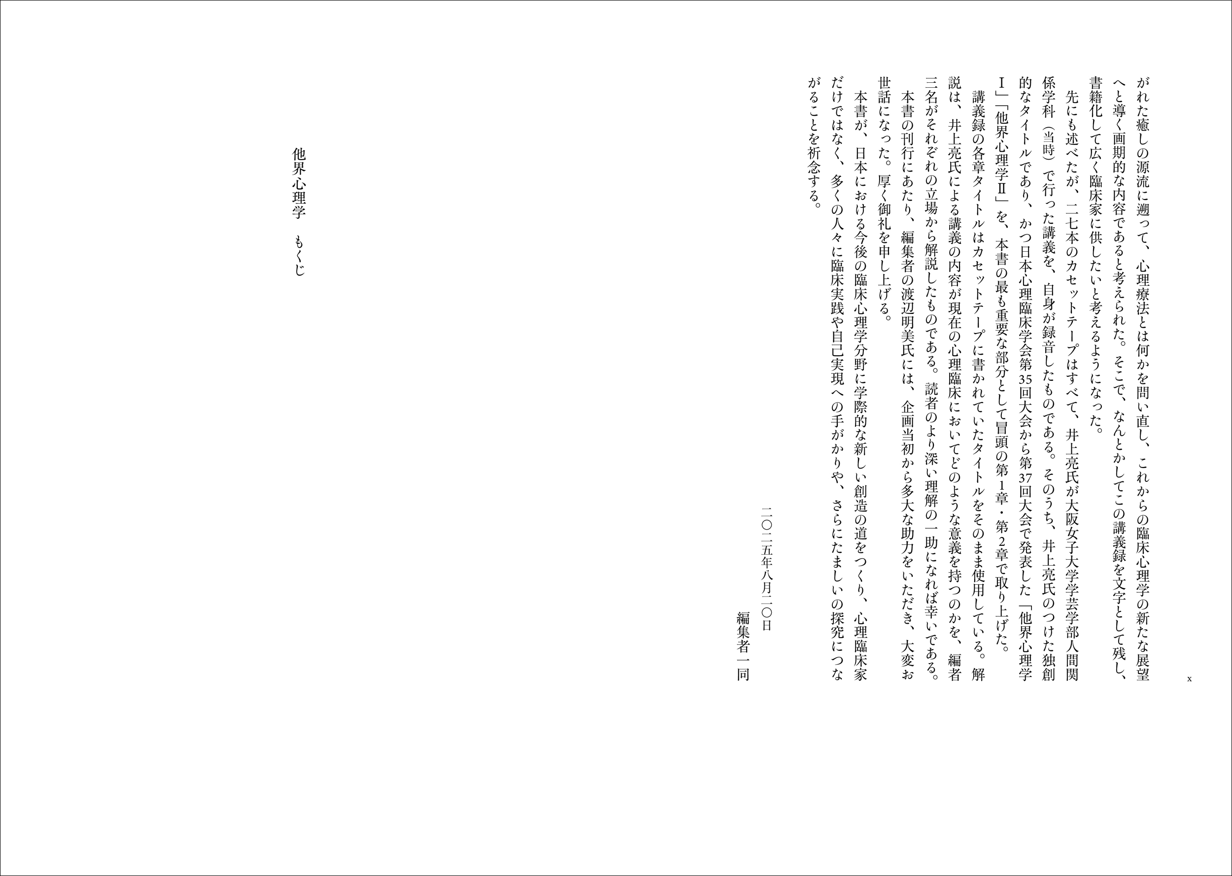 著者の「他界心理学」という発想は、生と死の境界で自我が揺らぐ離人症という重篤な病の研究を起点として生み出された。従来の心理学の理論や概念だけでは捉えきれない病の根源にあるものを理解しようとするとき、この40年近くも前に生み出された「他界心理学」の構想が、心理臨床実践にとって今なお古びることなく、むしろ新たな視点と多くの気づきを与えてくれることに、きっと驚かされることだろう。