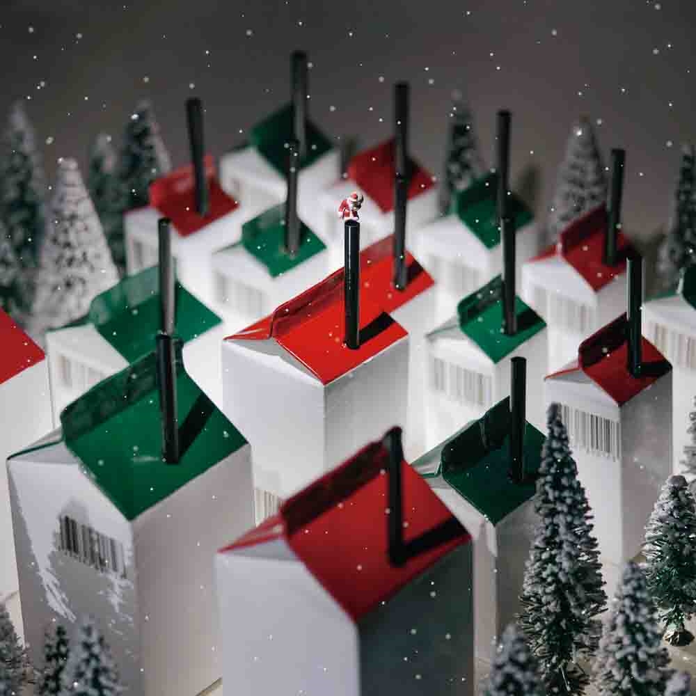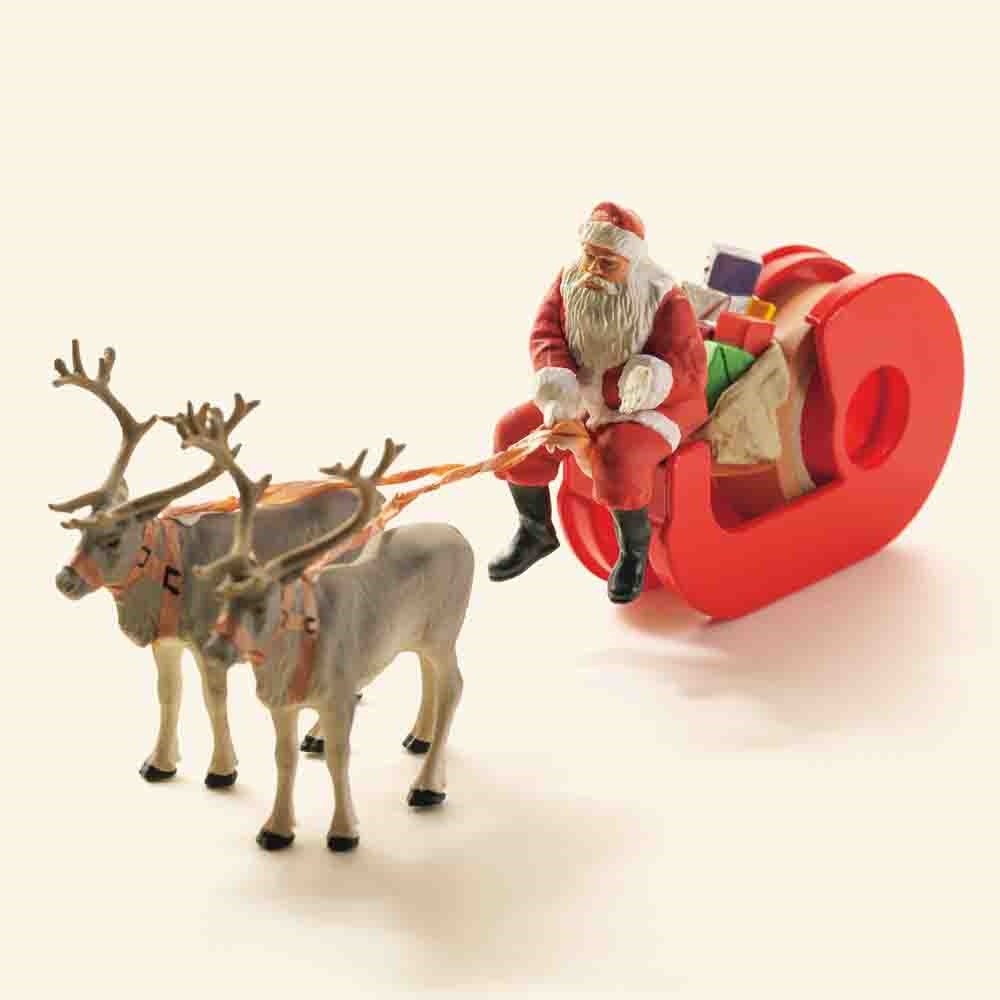クリスマスとサンタクロースをテーマにした緻密に作り上げられた「見立て」写真と、ユーモアあふれるタイトルの言葉が、贈られた人を笑顔にします。