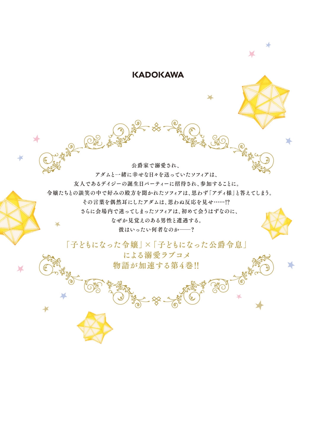 「子どもになった令嬢」×「子どもになった公爵令息」による溺愛ラブコメ、物語が加速する第4巻!!