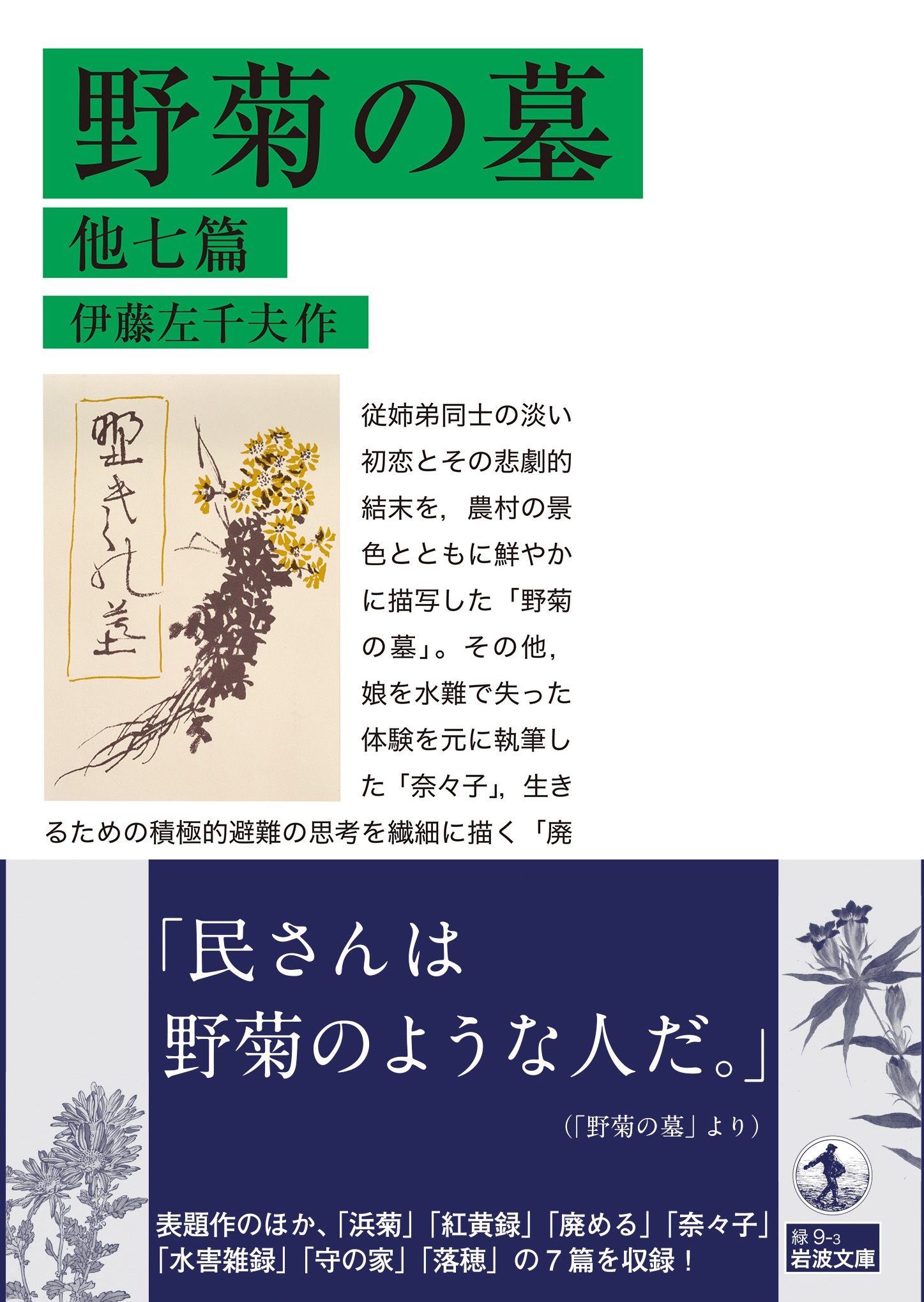 従姉弟同士の淡い初恋と悲劇を、農村の景色と共に鮮やかに描写した名作、『野菊の墓』。その他、娘を水難で失った体験を元に執筆した「奈々子」、生きるための積極的避難の思考を繊細に描く「廃める」、迫りくる水の恐怖を克明に記録した「水害雑録」等、左千夫の多彩な小説世界を味わえる7篇を収録。(解説=塩野加織)