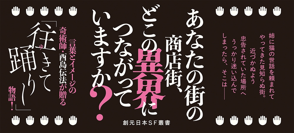 姉から猫の世話を頼まれ、 見知らぬ町に滞在することになった翻訳家の宮原。ある日、 近づかないように忠告されていた商店街にうっかり足を踏み入れてしまう。常に景色が変容し、 重なりあった異界が垣間見える商店街の深淵から、アリアドネの伊藤と名乗る人物に救出されるも、姉が異界の町の御神体にされたという事実を知らされる。事態を打開するには、 来たる 「掌紋祭」 の 「踊り合い」 で異界に近づく必要があるという。宮原は祭りに参加するべく、 町のダンス教室で猛特訓を積むことに。言葉とイメージの奇術師・酉島伝法が贈る往(ゆ)きて踊りし物語!