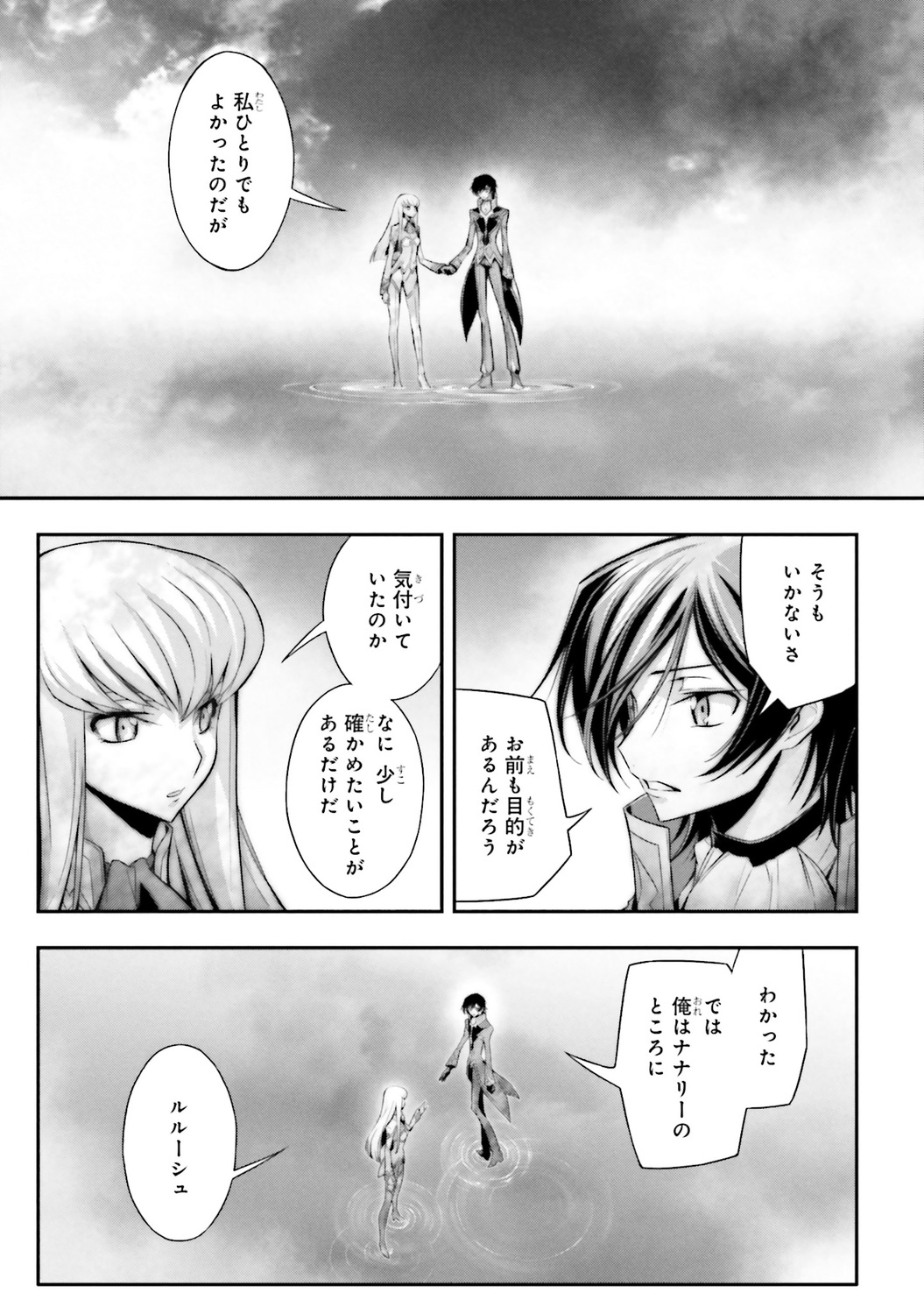 囚われたナナリーを救うためジルクスタンで最終決戦に臨むルルーシュたち。戦いの果てにCの世界の深淵へ落ちていくルルーシュを救い出したのは――!? 『奪還のロゼ』へと繋がるオリジナルエピローグも必見!