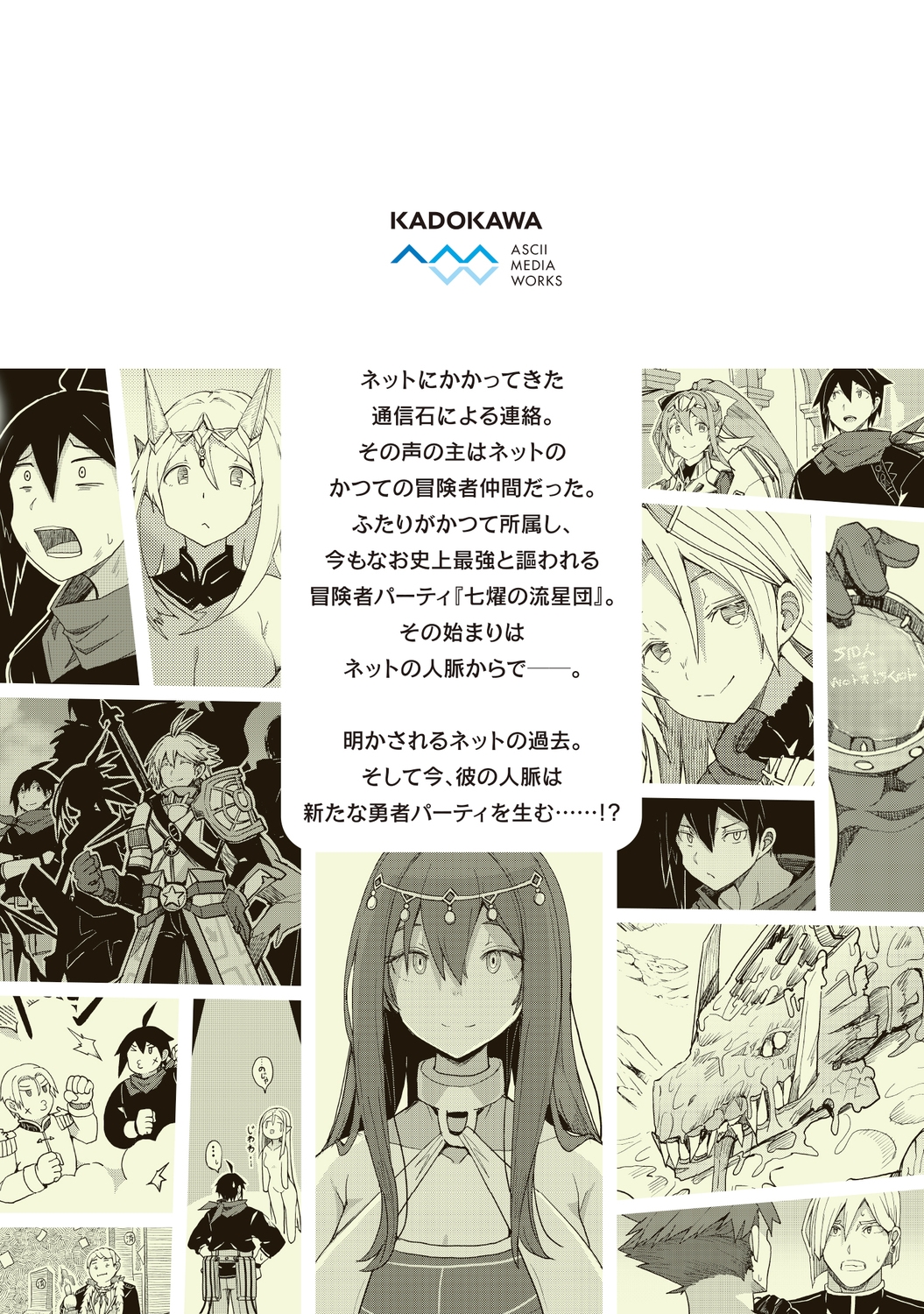 ネットにかかってきた通信石による連絡。その声の主はネットのかつての冒険者仲間だった。ふたりがかつて所属し、今もなお史上最強と謳われる冒険者パーティ『七燿の流星団』。その結成のきっかけはネットの人脈で――。