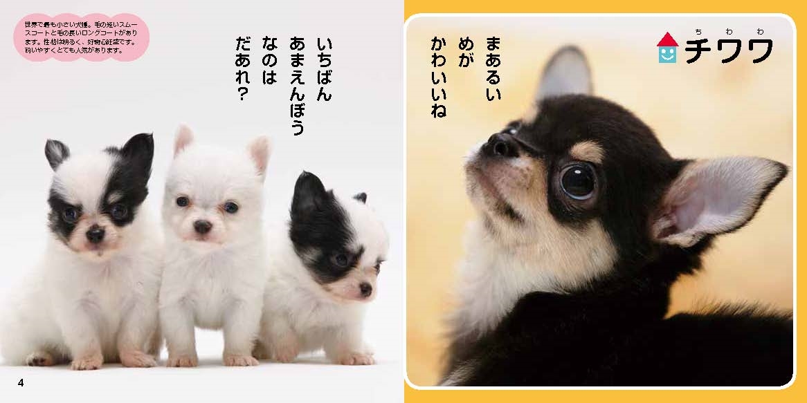 かわいいこいぬがいっぱいの、写真えほんです。